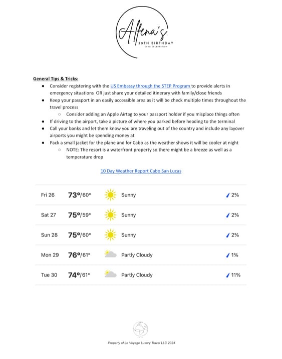 Thank you for choosing Le Voyage Luxury Travel LLC for your travel needs!